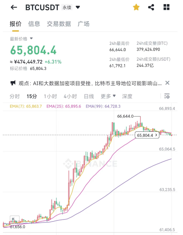 5月16日,数字货币市场狂拉。截至发稿,比特币涨幅为6.31%,报65804.4美元。 数字货币市场一路狂欢,多个品种单日涨超20%。 根据加密货币检测网站coinglass数据,最近24小时,共有58751人被爆仓 ,爆仓总金额为1.59亿美元。最大单笔爆仓单发生在OKX - BTC-USDT-SWAP中,价值211.46万美元,相当于约1526万元。 比特币市场突然拉升,主要有三个方面的原因:一是香港比特币现货ETF持续炒作,二是昨夜美国核心CPI数据疲软提振降息预期,三......【更多...】